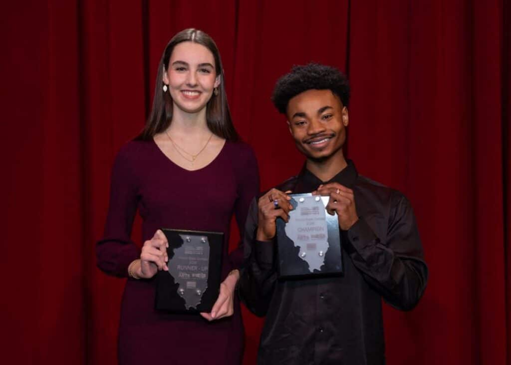 Elliana Sheehan and Jaden Conley at the Poetry Out Loud state finals Photo credit: William Richards On Monday March 2,…