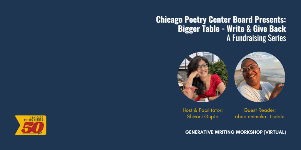 The Chicago Poetry Center Board invites you to join us at Bigger Table: Write & Give Back – a thematic writing fundraiser series to…