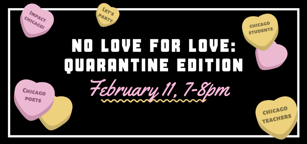 No Love for Love: Quarantine Edition is next week! Thursday, February 11, 7 – 8 p.m. Join the Chicago Poetry Center for…