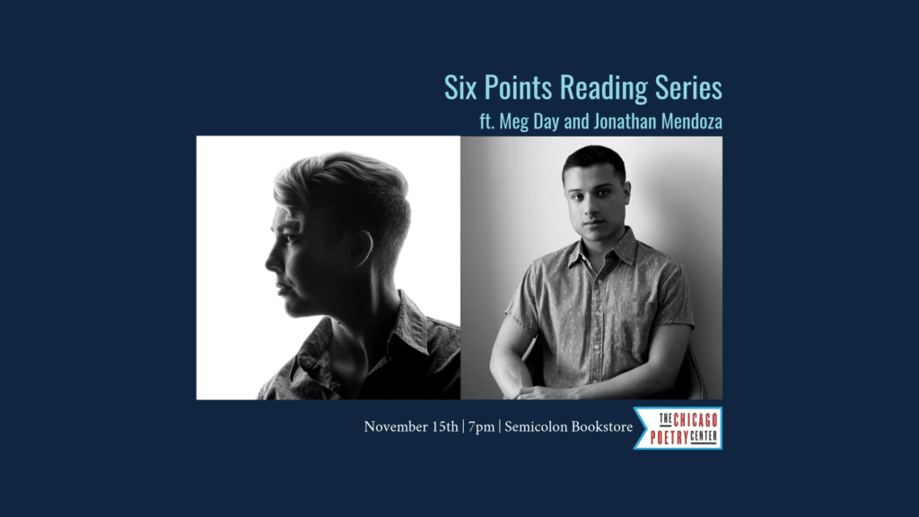November Six Points Reading Meg Day and Jonathan Mendoza November 15th, 7-8 pm Semicolon Bookstore Meg Day is the author of Last…