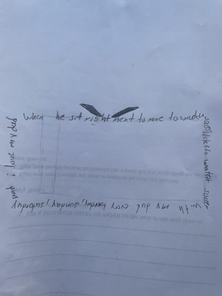 Hello hello! For my 5th week with Jordan’s 6th graders, we delved into the world of concrete poems, also known as shape poems. After students saw some engaging and graphically designed concrete poems, we read Juan Felipe Herrera’s “Social Distancing.” Then students designed and wrote their own concrete poems. Take a look below!