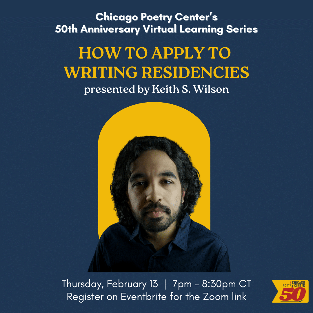 Join the Chicago Poetry Center as poet Keith S. Wilson talks about how to find a residency that suits your needs and what you should know about the application process. Bring your questions for a Q&A after the presentation.