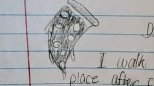 I walk into the pizza place after